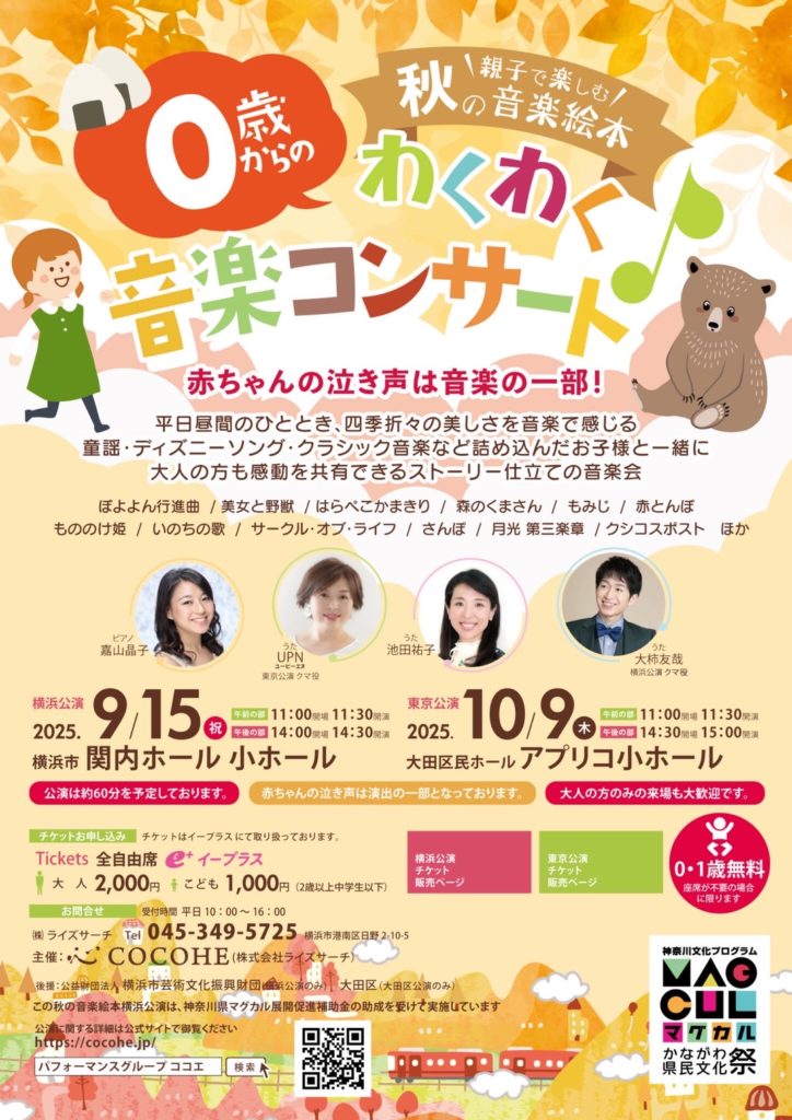 COCOHEのコンサートは、ただ音楽を楽しむだけではありません。楽しい時間の中に、心に大切なメッセージがそっと届く――そんな特別な音楽コンサートです。