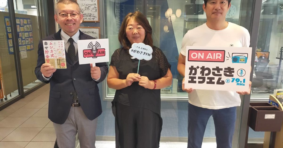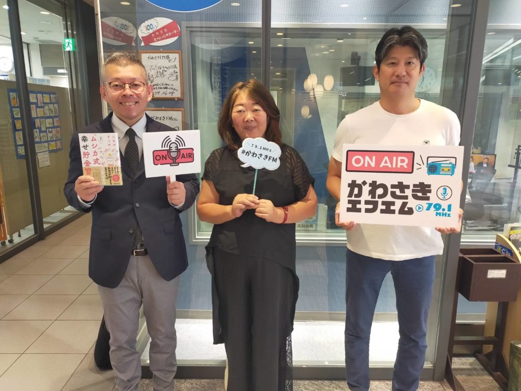 写真左から「ゲストのFP虫鹿泰正さん」「パーソナリティのシュフレ協会武次」「私たちをお繋ぎいただいた小林さん」