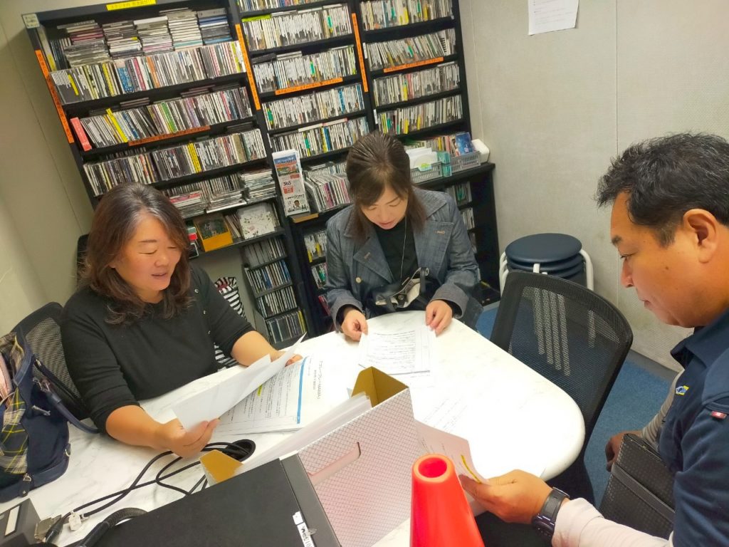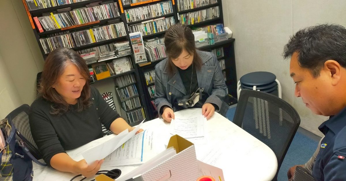 写真左からパーソナリティー武次、ママのがん検診を応援してくださっている畔上さん、 株式会社日動電設代表取締役岡部様